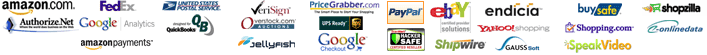 QuickBooks e-Online Data eBay BuySAFE QuickBooks Merchant Service PayPal UPS PriceGrabber Overstock Auctions FedEx Amazon Google Analytics shipwire scanalert gaussoft ispeakvideo